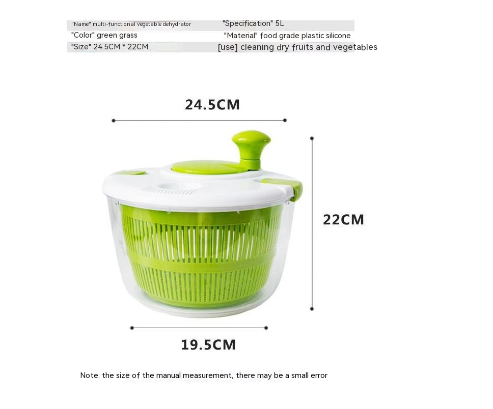 Product Details:Material: PlasticColor: Grass greenProduct category: DehydratorContent: 5LPurpose: Kitchen toolsProduct Packaging:Fruit dehydrator * 1