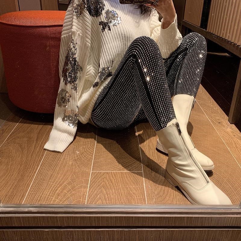 Product information:Color classification: black diamond silver diamondClothing style details: diamondLength: trousersWomen's trousers type: pencil pantsSize informationSize: all size