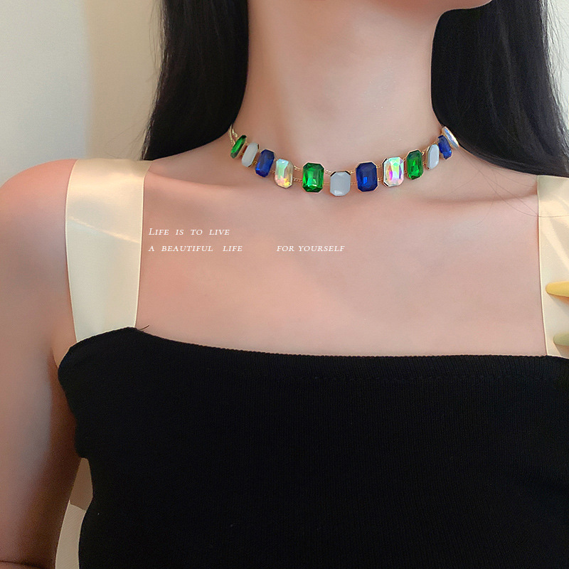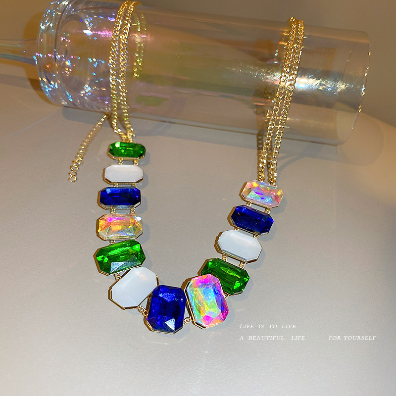 European And American Retro Colorful Crystal Double Necklace Exaggerated