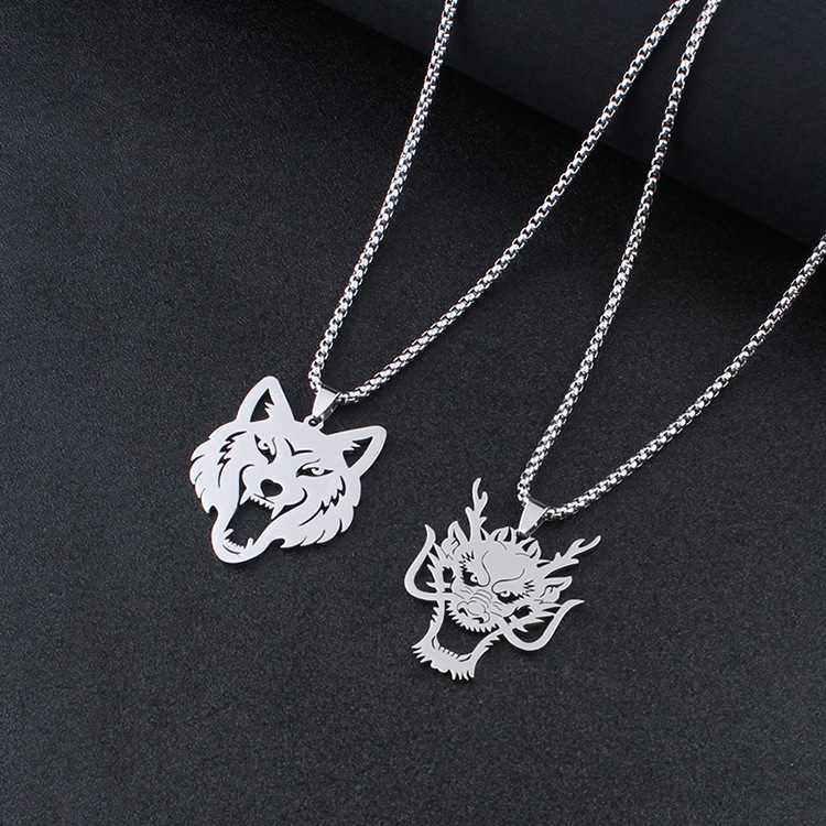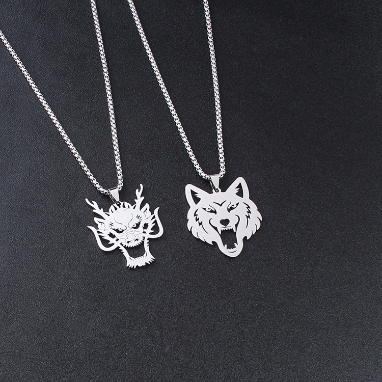 Product information:Treatment Process: PolishingColor: dragon head pendant 60cm chain, wolf head pendant 60cm chainMaterial: Stainless steelModeling: animal/ZodiacPopular elements: roundStyle: Personality
