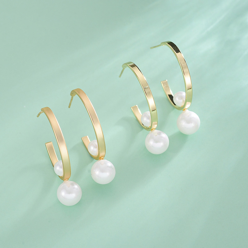 Product Information:Style: European and AmericanMaterial: Copper-plated 14K real gold+UV+imitation pearlType: EarringsStyle: Women'sModeling: GeometryPacking List:Earrings*1pair