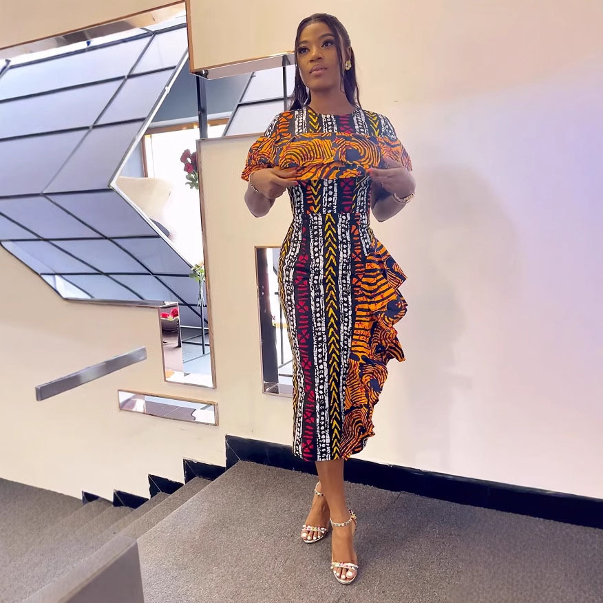 Women's Elegant Print Contrast Color Slim Fit Dress