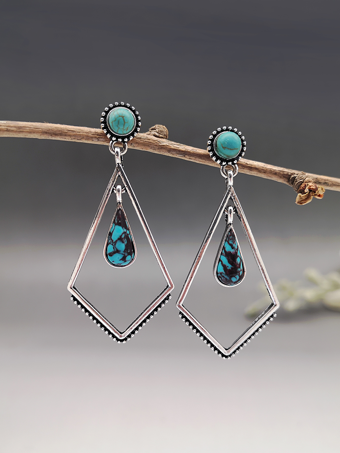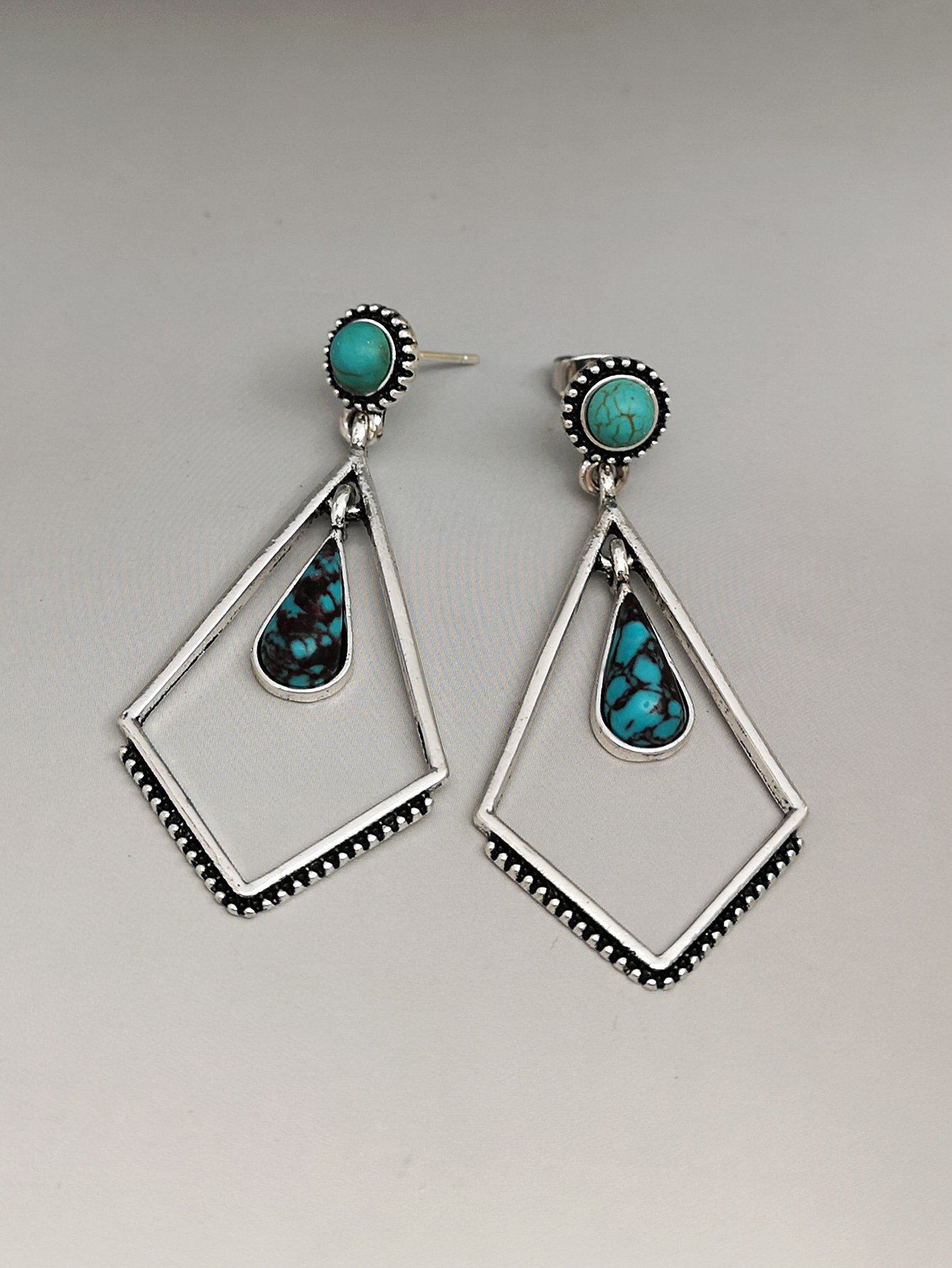Product Information:Style: simpleMaterial: Alloy + TurquoiseTreatment process: electroplatingType: EarringsStyle: Women'sModeling: GeometryPacking List:Earrings*1