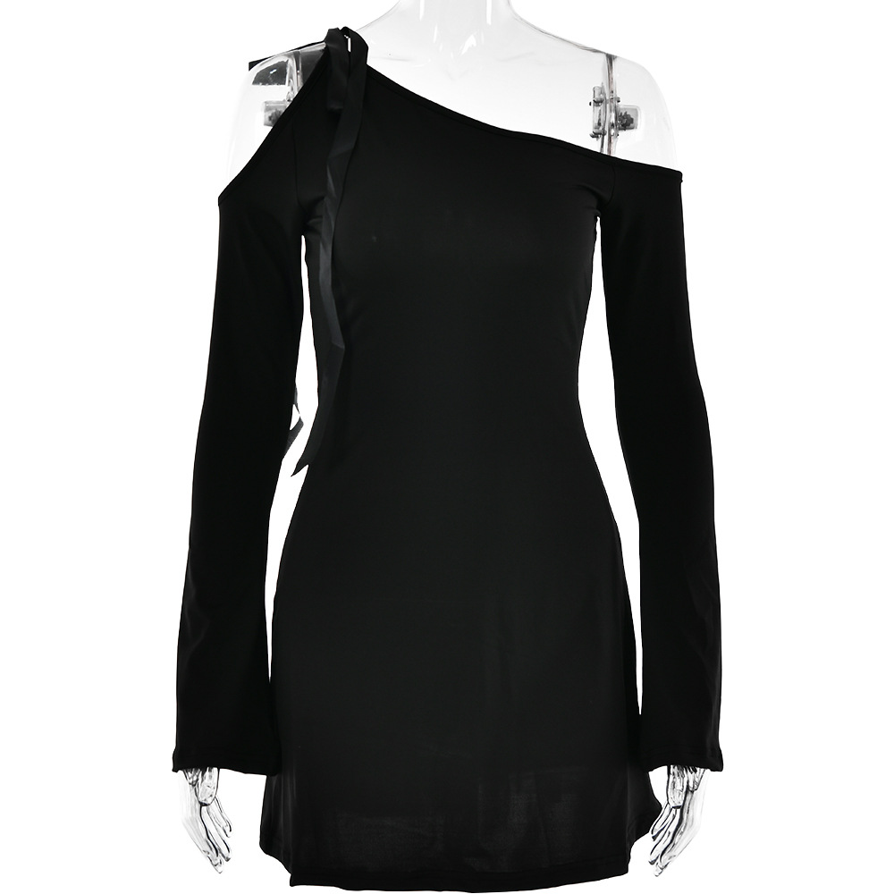 Fashion Sexy Slant Neck Off-the-shoulder Splicing High Waist Long Sleeve Wrap Hip Dress