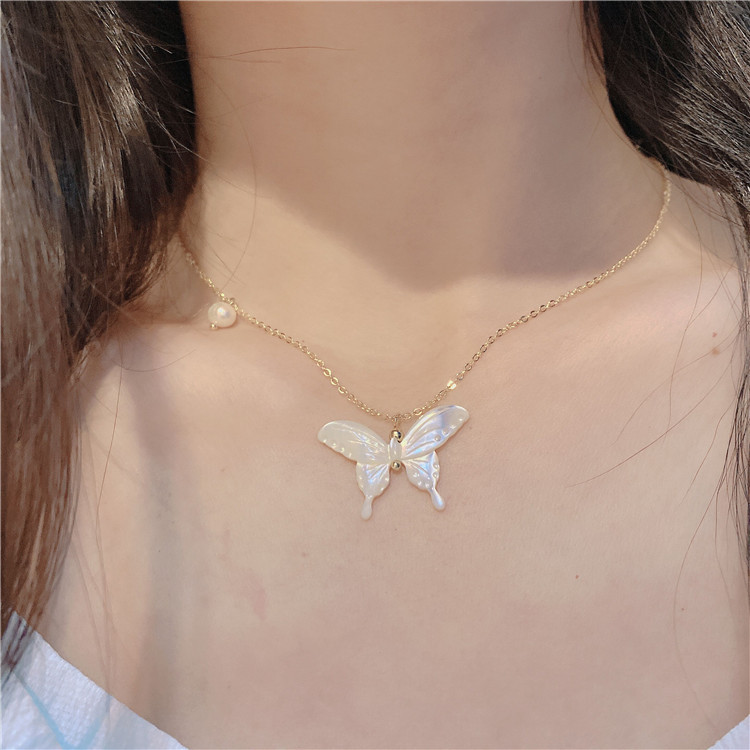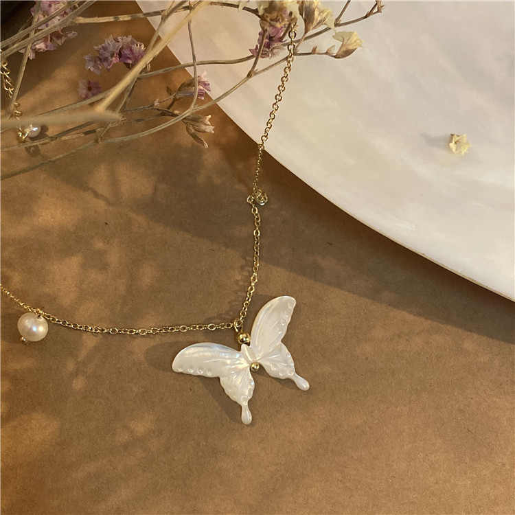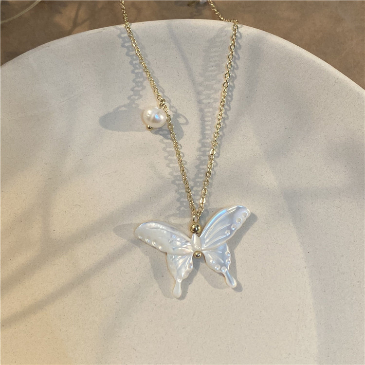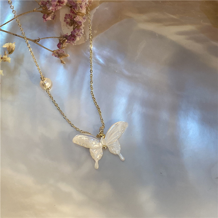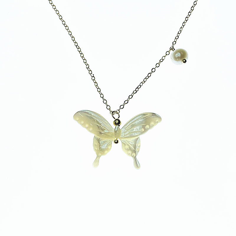 Necklace, shell butterfly, real gold plated