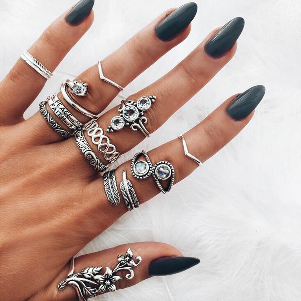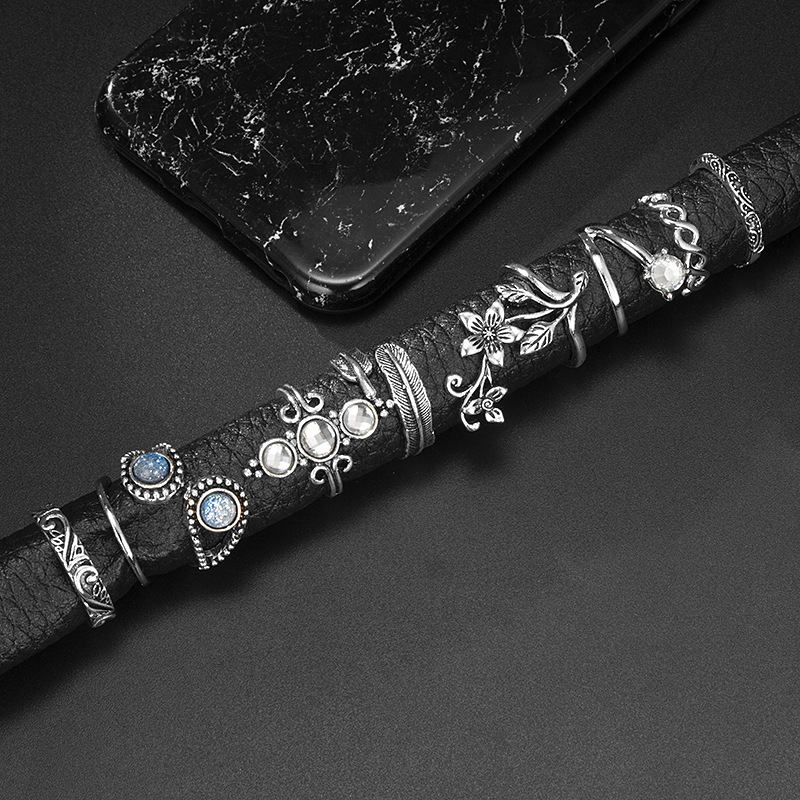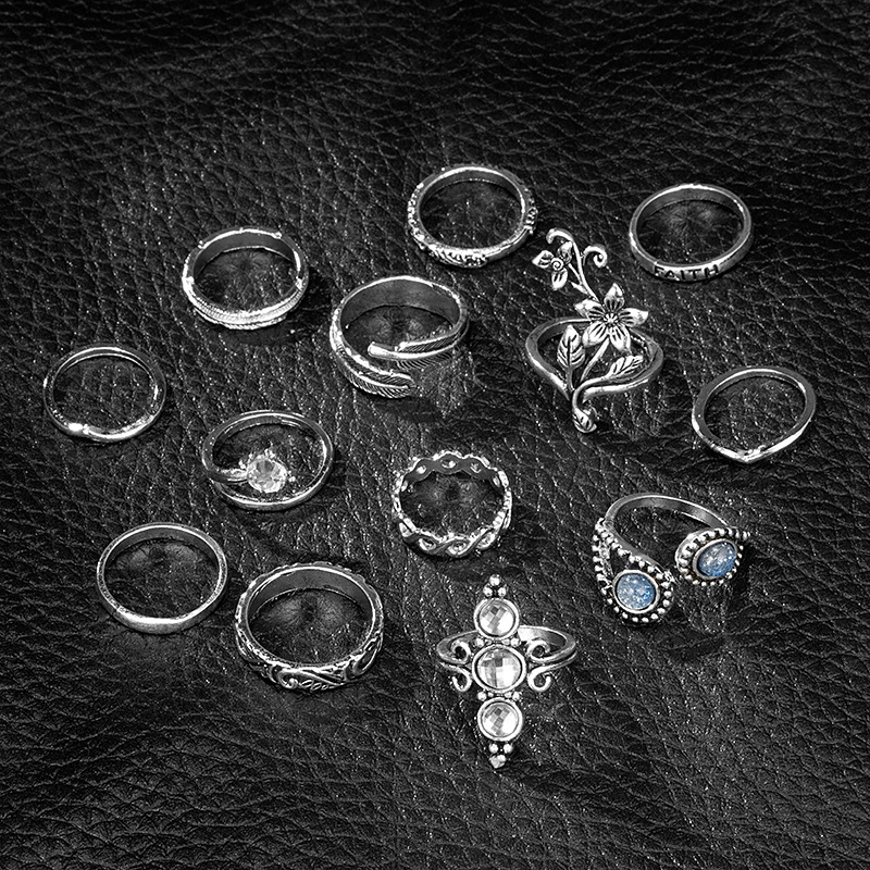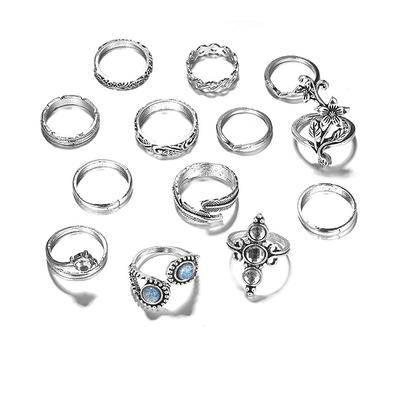 Flower diamond leaf ring set of 13