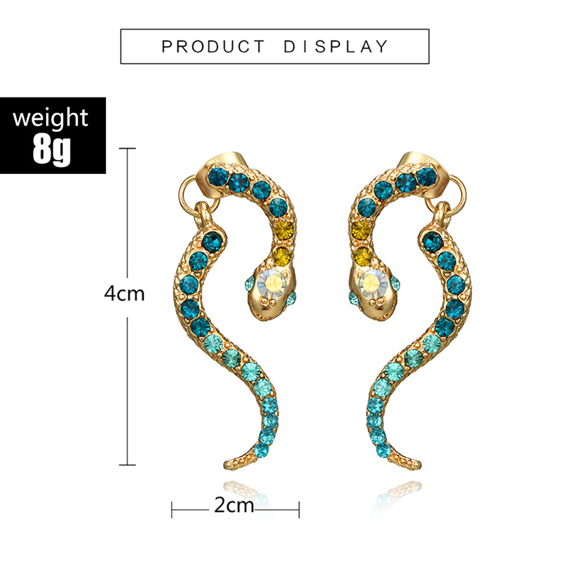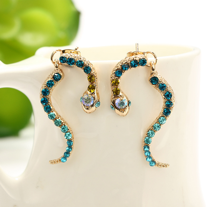 Retro Personality Zodiac Snake Colored Diamond Stud Earrings