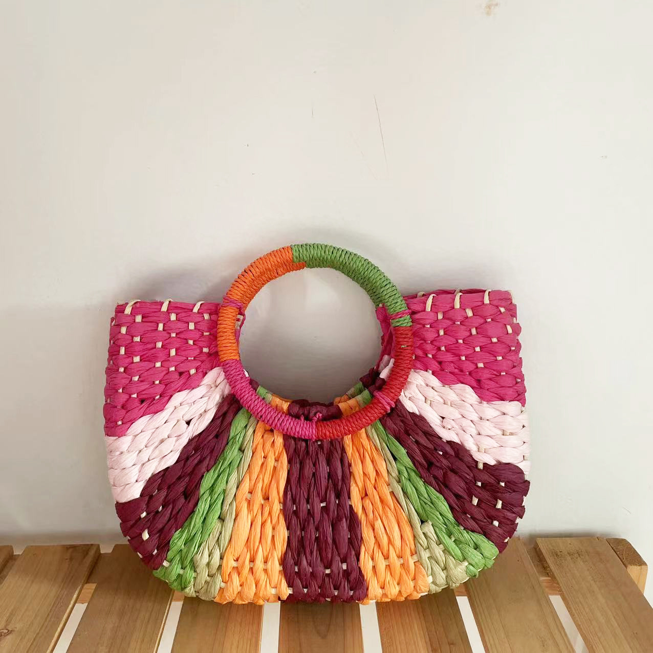 Product information :Color: catchy purple, catchy rose redMaterial: StrawLuggage trend style: straw bagLining texture: polyester