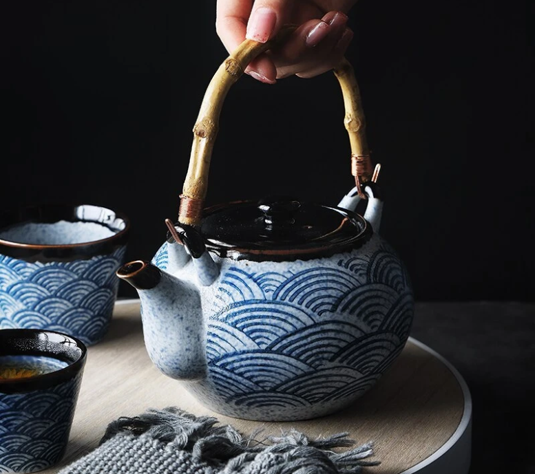 Wave ceramic hand-painted teapot