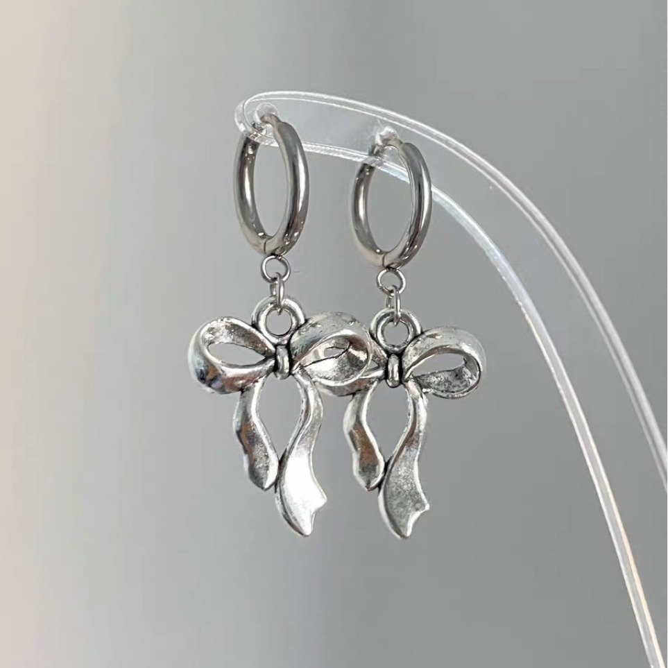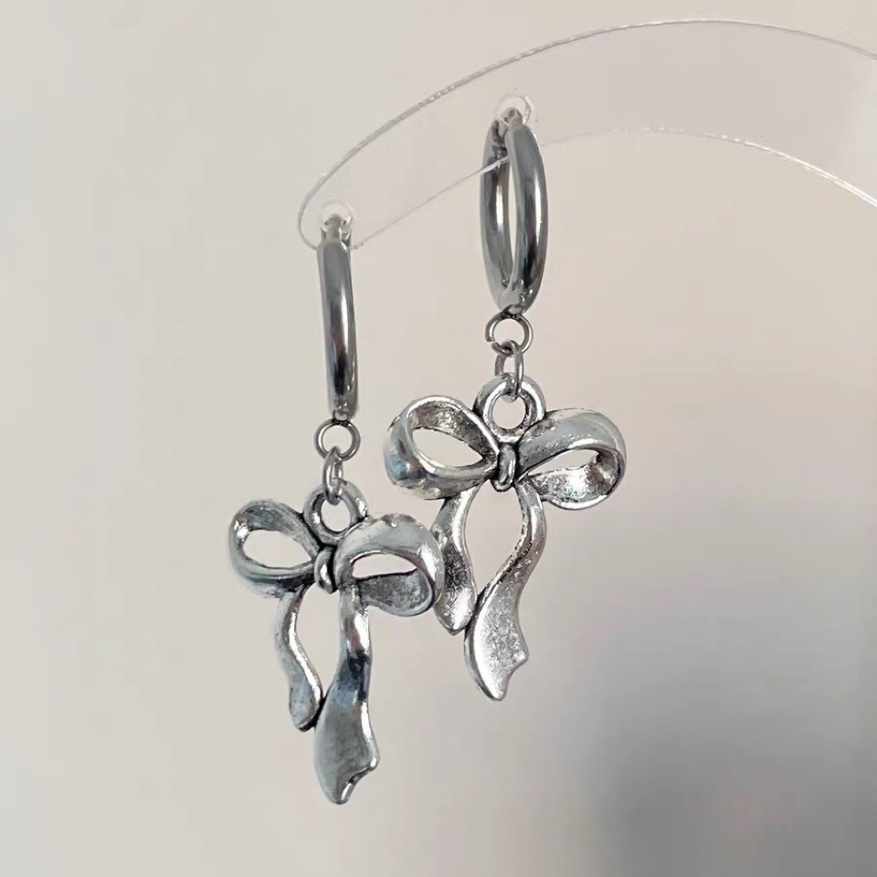 Product information:Color: Bow eardrops, Thorn bowMaterial: Stainless steelPopular elements: BowStyle: European and American