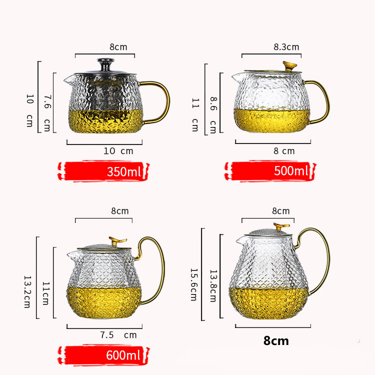 Product Name: TeapotMaterial: High borosilicateSurface technology: Heat-resistant glassApplication: Office, homeTemperature: -20°C-150°C sudden change in temperature difference