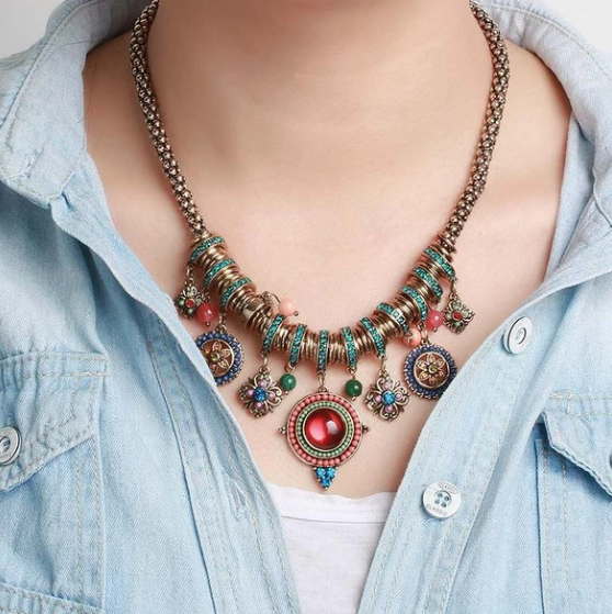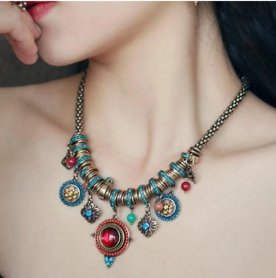 [size]: 42.6 cmEuropean and American fashion bohemian style pendant gemstone compassMaterial Plastic/Resin