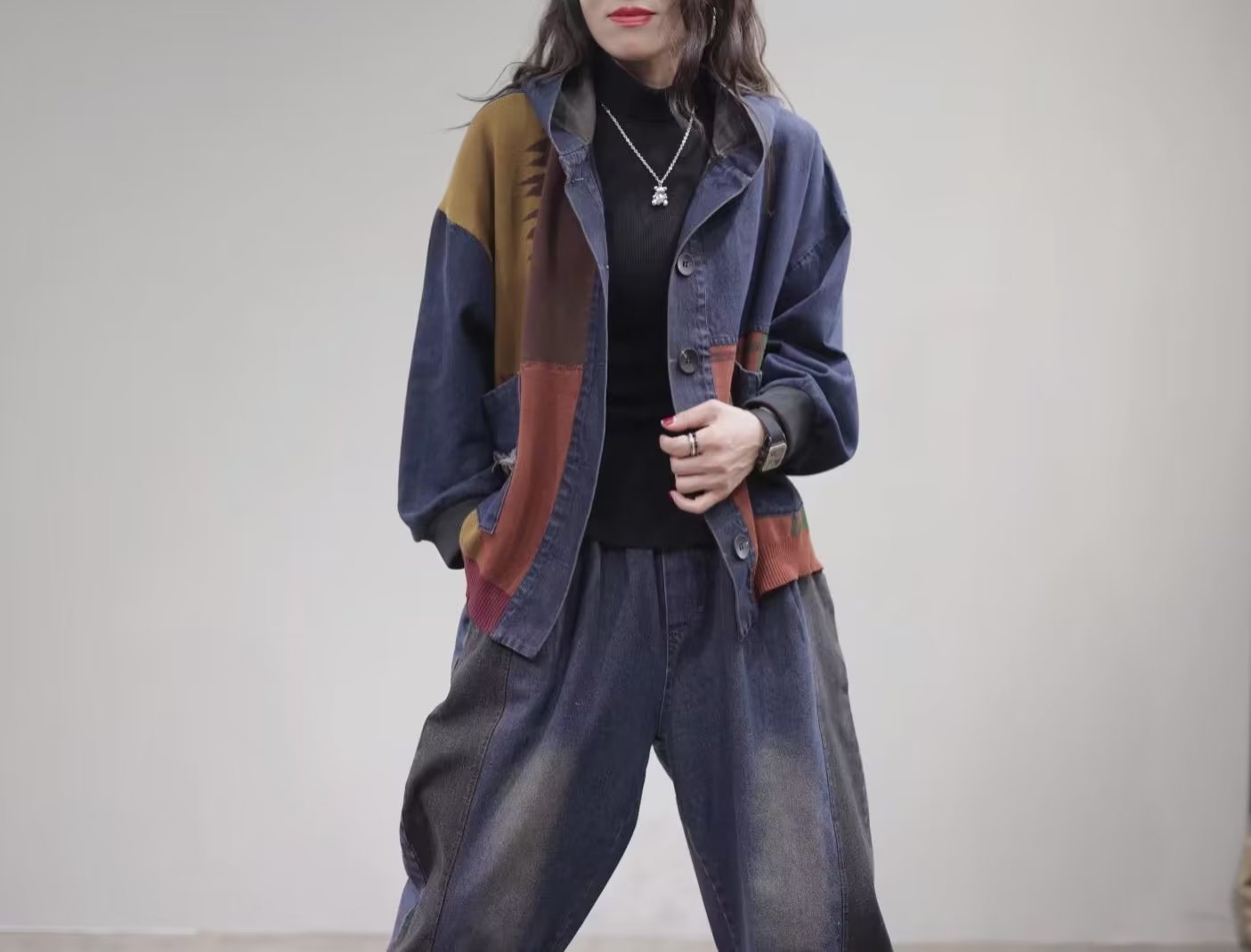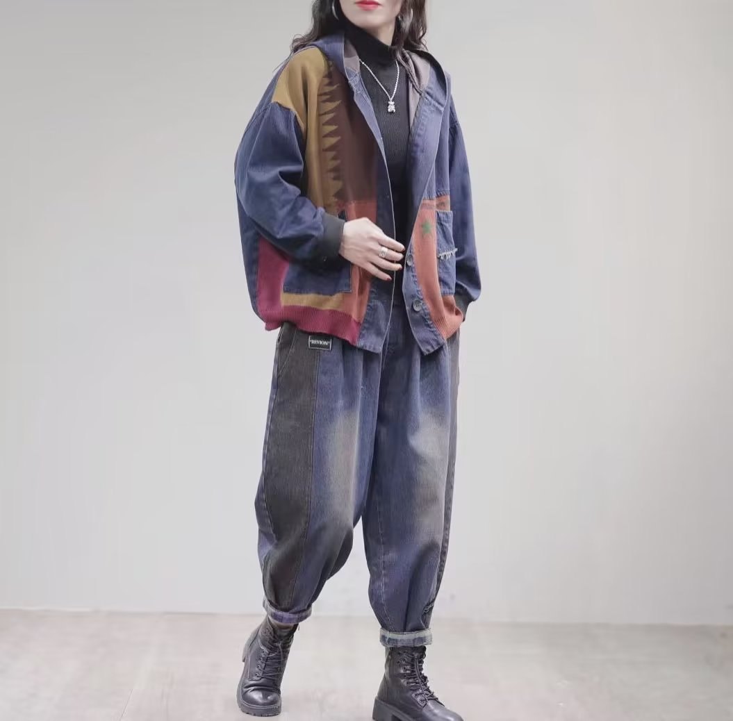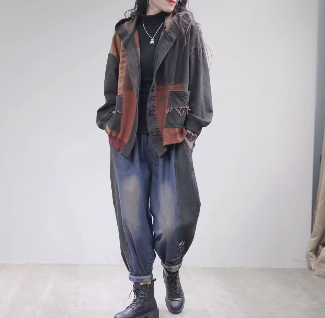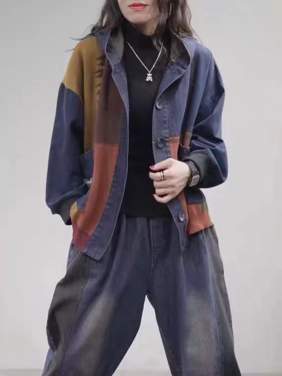 Product information:Fabric name: Cotton Color: blue, gray BlackApplicable Gender: Female Style type: Art retro