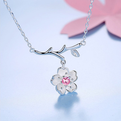 Color: New style literary forest flower clavicle chain (pink diamond)