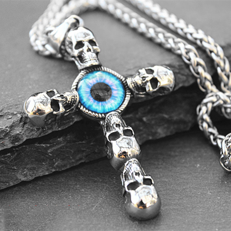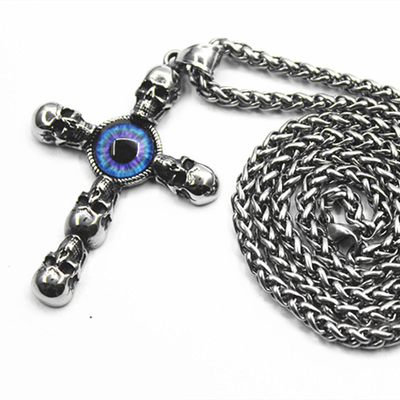 Color Classification: Demon Eye Skull Cross Single Pendant Demon Eye Skull Cross + Interlocking Chain 50cm Demon Eye Skull Cross + Interlocking Chain 60cm Demon Eye Skull Cross + Interlocking Chain 70cm Demon Eye Skull Cross + Interlocking Chain Buckle chain 80cm magic eye skull cross + keel chain 50cm magic eye skull cross + keel chain 60cm magic eye skull cross + keel chain 70cm magic eye skull cross + keel chain 80cm chain