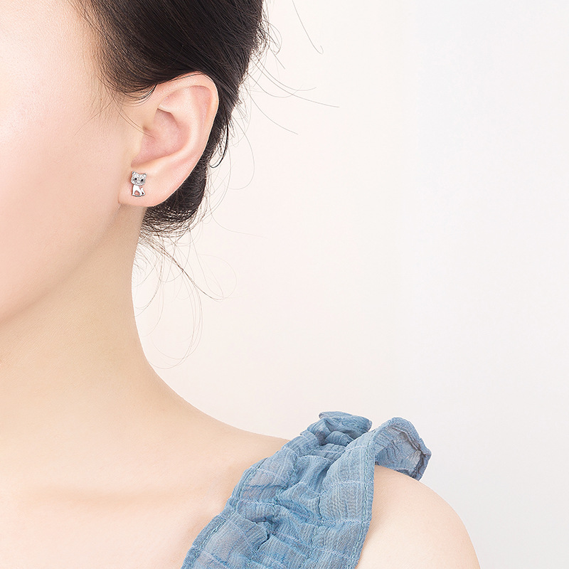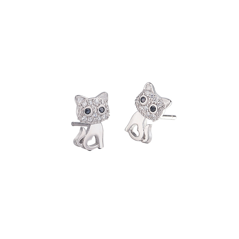S925 sterling silver cute cat earrings
