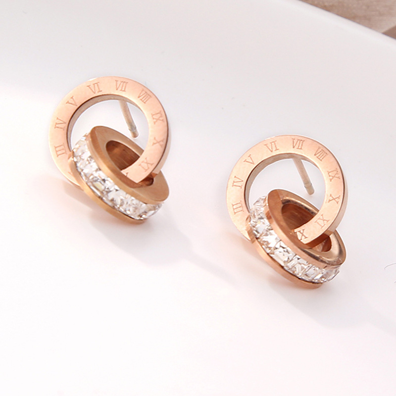 Color: Rome white diamond rose gold stud earrings, Rome red diamond rose gold stud earrings