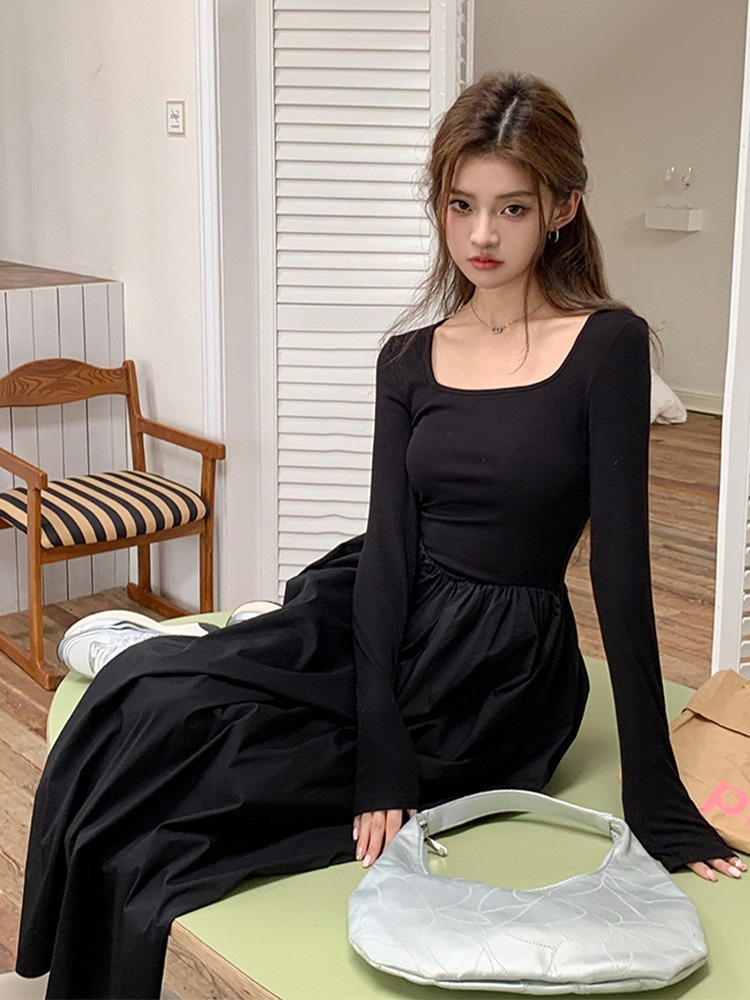 Product information:Color: light khaki, Black Waist type: high waist Size: S,M,L,XL,XXL Sleeve type: regular sleeve Main fabric composition: Polyester (polyester fiber) Sleeve length: long sleeve Skirt Category: Dress