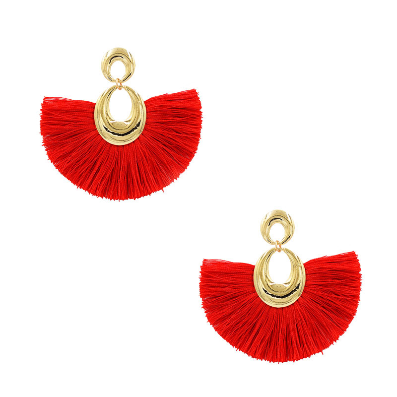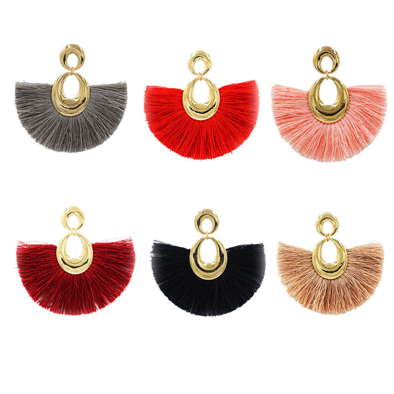 Name: Water drop fan-shaped tassel earringsMaterial: Alloy + WhiskersSize: about 6cm in length, about 7cm in widthType: Ear stud