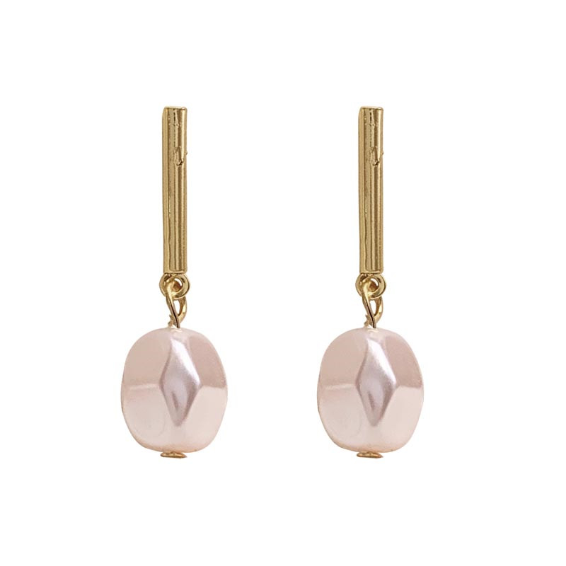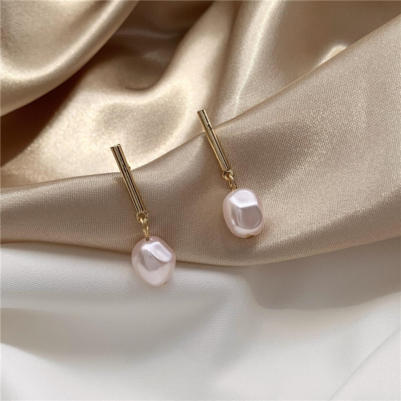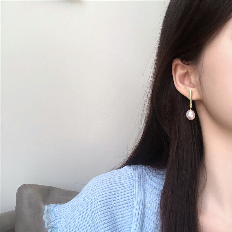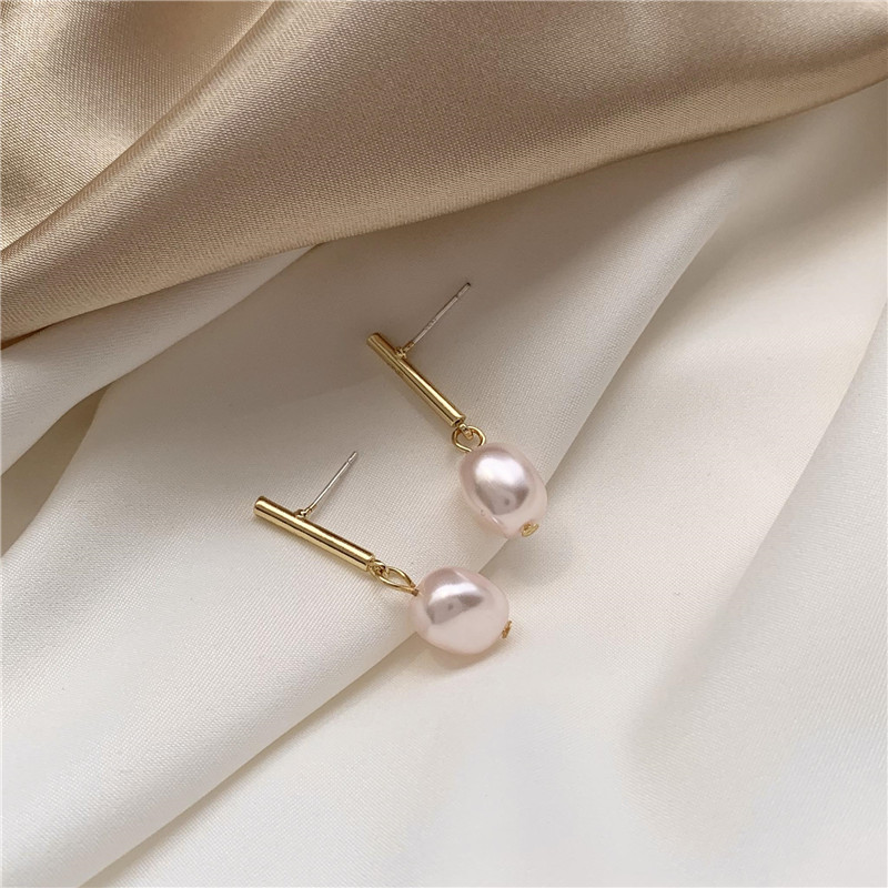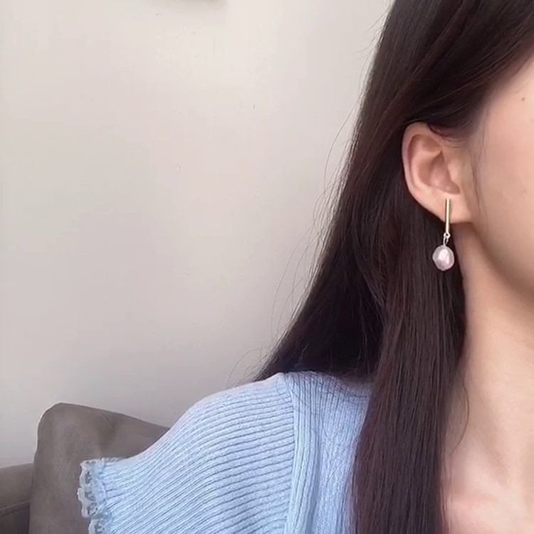 S925 Silver Needle Irregular Pink and Simple Pearl Earrings