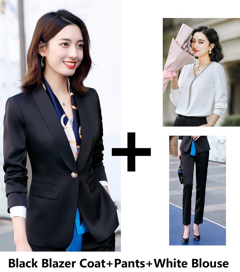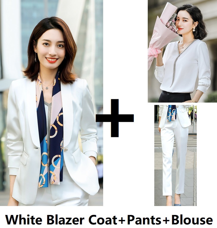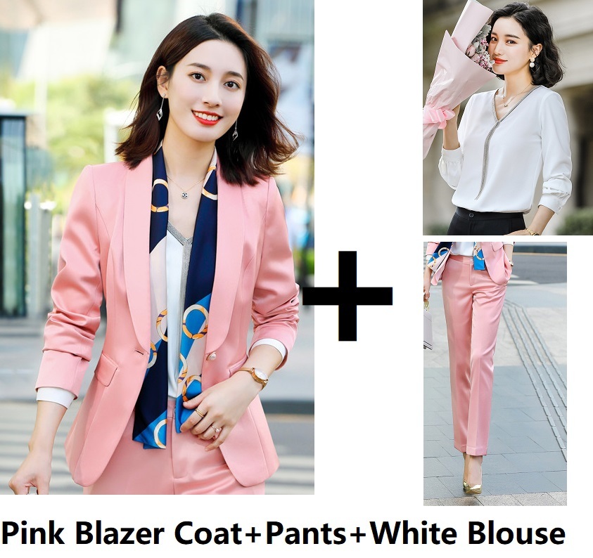 Color: pink (1605 pink suit), black (1605 black suit), white (1605 white suit), pink (1605 pink suit + 1605 pink pants), white (1605 white suit + 1605 white pants), black (1605 black suit + 1605 black Pants), pink (1605 pink suit + 1605 pink pants + 1968B white shirt), white (1605 white suit + 1605 white pants + 1968B white shirt), black (1605 black suit + 1605 black pants + 1968B white shirt)