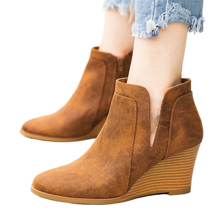 Vintage Roman side zipper ladies single shoes