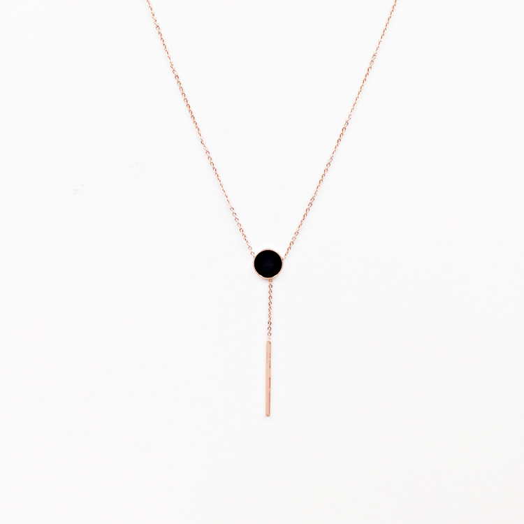 Black dot fringed long pendant necklace