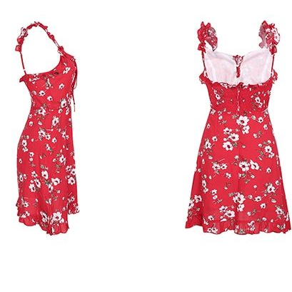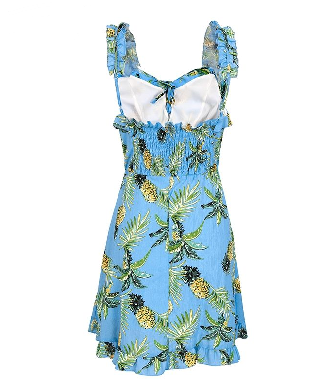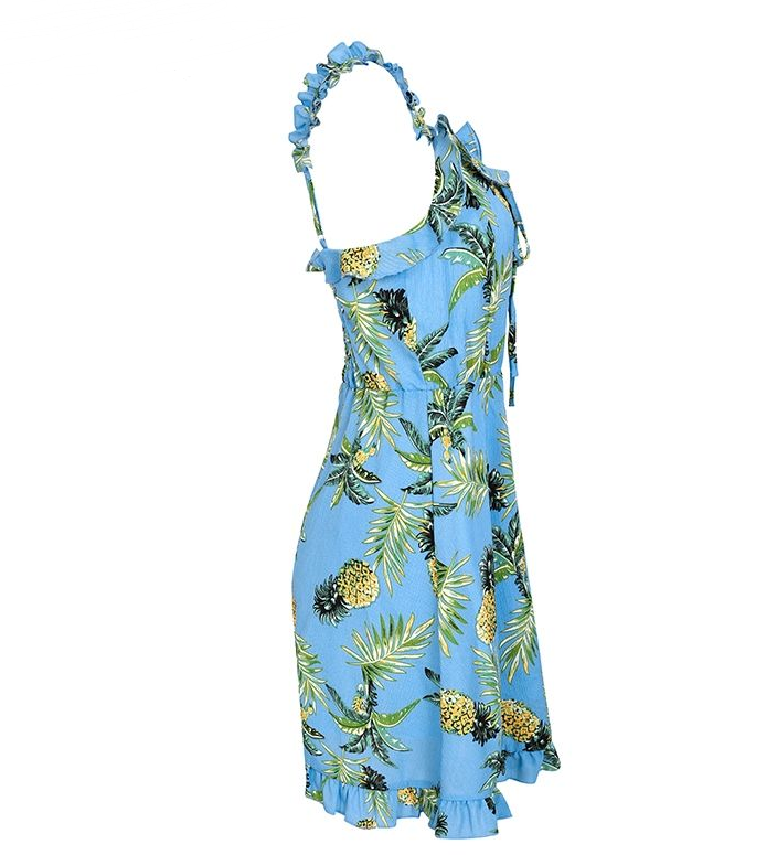 Dress length: above the knee, miniSleeve length (cm): sleevelessStyle: bohemian styleNeckline: V-neckDecoration: ruffledSize : S M L