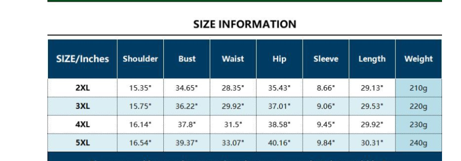 Size: 2XL,3XL,4XL,5XL
