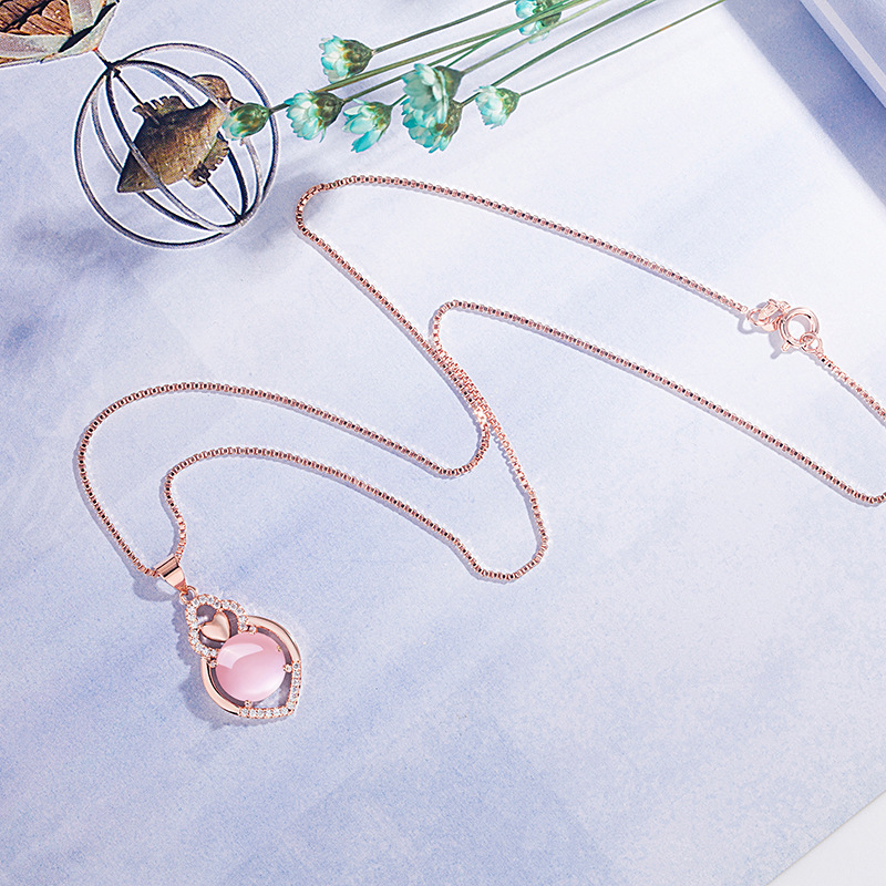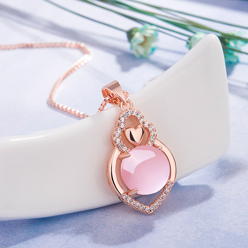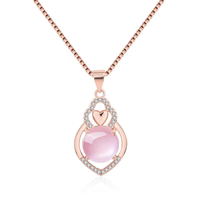 Color: Love Hibiscus Stone Pendant [Copper Plated Rose Gold], Hibiscus Stone Pendant + Rose Gold Box Chain, Rose Gold Box Chain