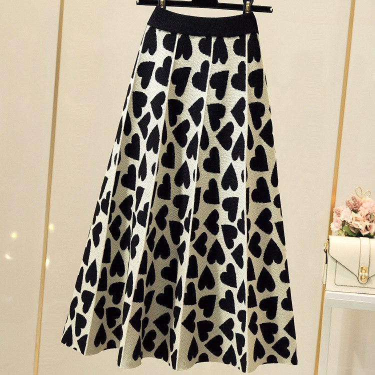 Product information:Pattern: heart-shaped Fabric name: knitted Color: khaki, brown, black background, white heart shape, white background black heart shape Size: free size Style type: Urban Leisure Skirt Category: skirt
