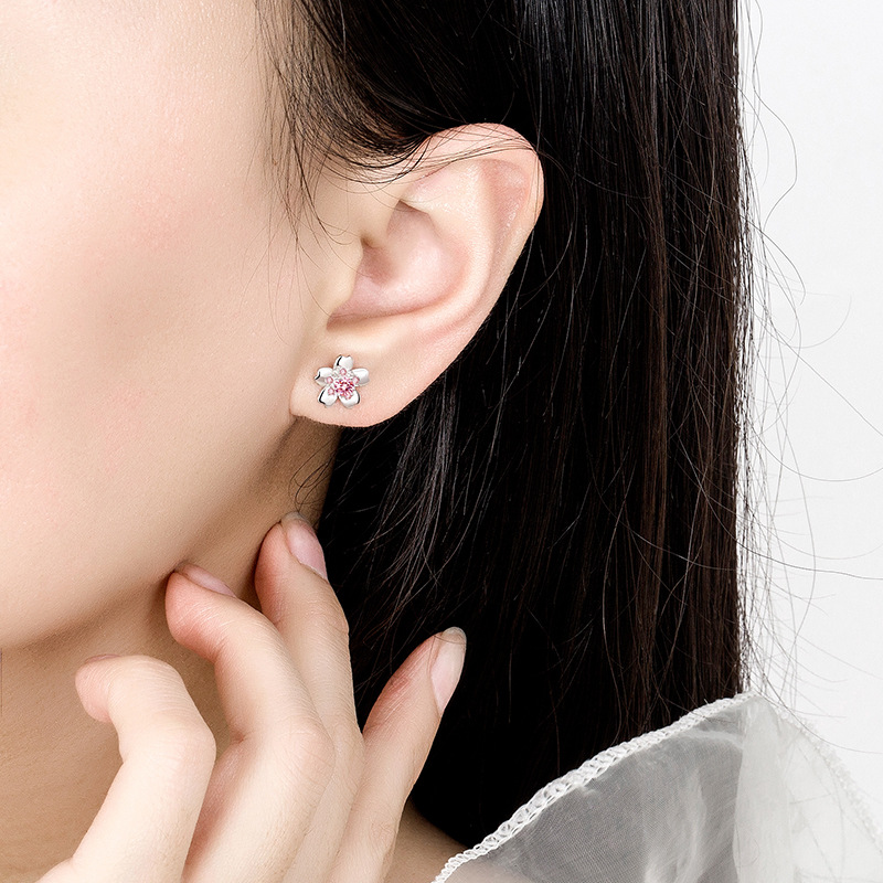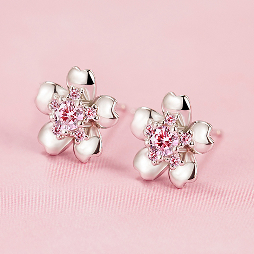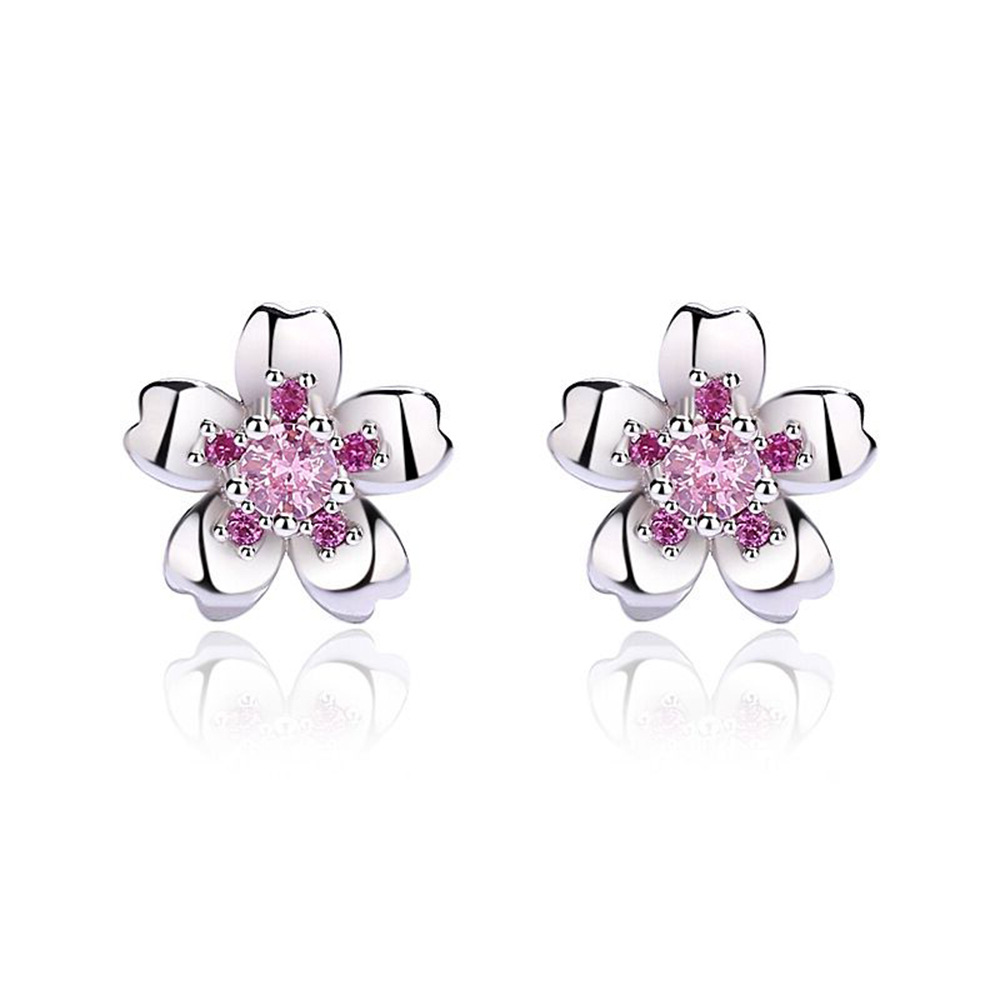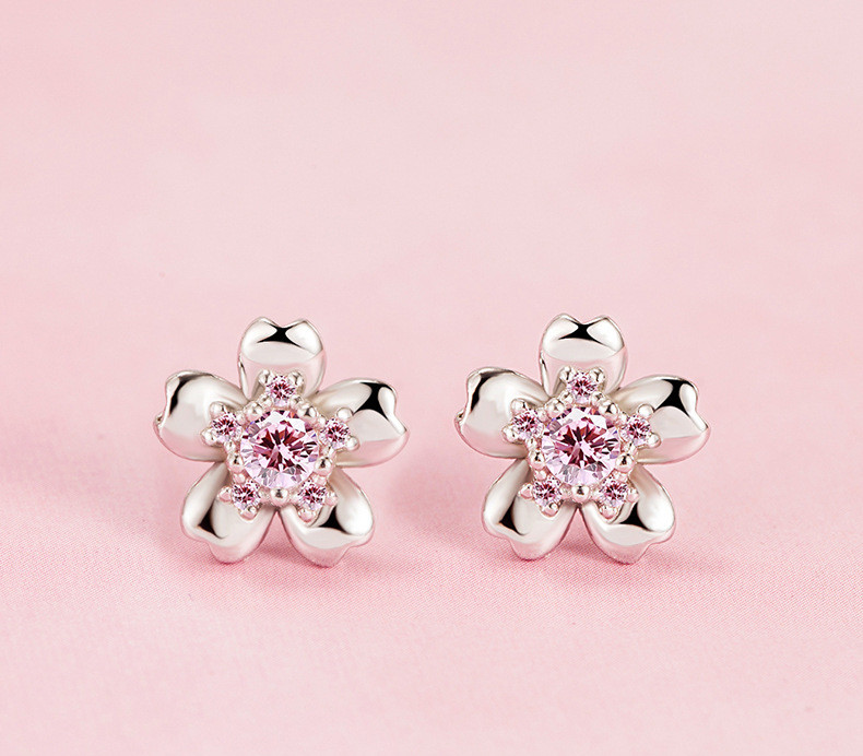 Product Details:Material: silverTreatment process: electroplatingShape: flowerColor: pink diamond/with rubber earplugs (about 1.8 grams)Size information:
