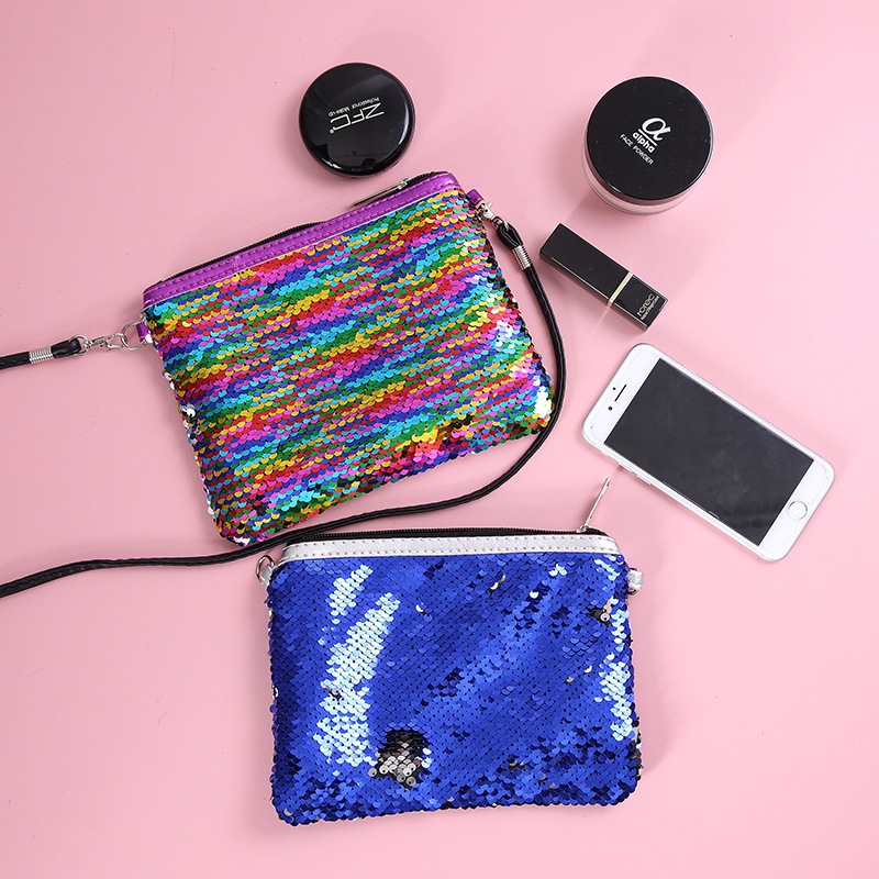 Style: Women's one-shoulder bagFabric texture: polyesterLining texture: polyesterCase shape: vertical squareBag fashion: envelope bagOpening method: ZipperPopular element: Sequins