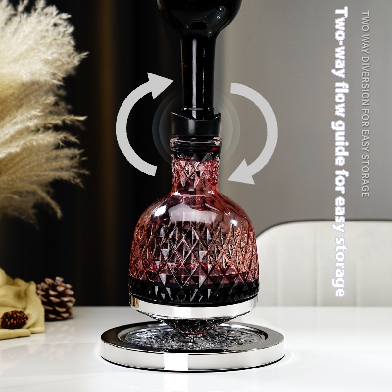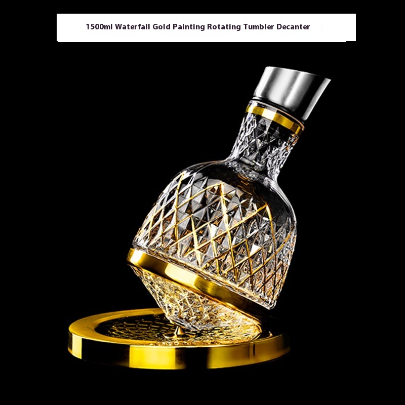 Specification size: (sealing plug) crystal 1500ml rotating tumbler wine decanter, (sealing plug) gold painting 1500ml rotating tumbler wine decanter, (Waterfall plug) crystal 1500ml rotating tumbler wine decanter, (Waterfall plug) gold painting 1500ml rotating tumbler wine decanter, gold plated bottom wine decanter, manual painting golden wine decanter