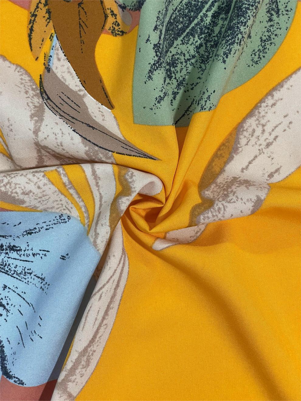 Color: black, yellow, white, navy blue, red, black background yellow leaves