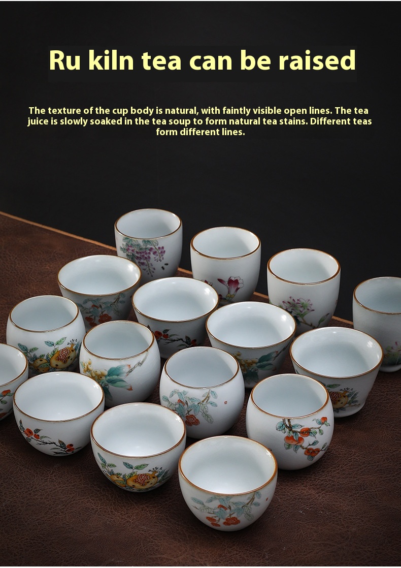 Color classification: Ru ware wish Cup (Magnolia), Ru ware wish Cup (Lotus), Ru ware wish Cup (pear flower), Ru ware wish Cup (Jade wisteria flower), Ru ware Zen Cup (Litchi), Ru ware Zen Cup (pomegranate), ru ware Zen Cup (PIPA), Ru ware Zen Cup (Hawthorn), Ru ware Zen Cup (Persimmon), Ru ware Xingya Cup (Litchi), Ru ware Xingya Cup (pomegranate), Ru ware Xingya Cup (PIPA), ru ware Xingya Cup (Hawthorn), Ru ware Xingya Cup (Persimmon), Ru ware Lisi Cup (Litchi), Ru ware Lisi Cup (pomegranate), Ru ware Lisi Cup (PIPA), ru ware Lisi Cup (Hawthorn), Ru ware Lisi Cup (Persimmon)