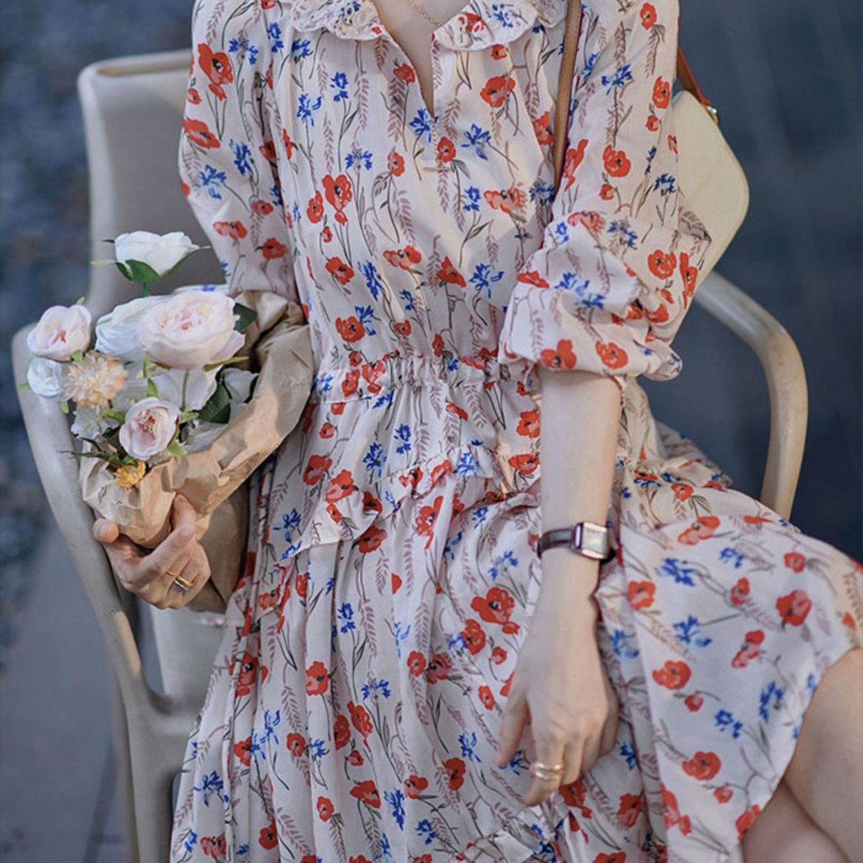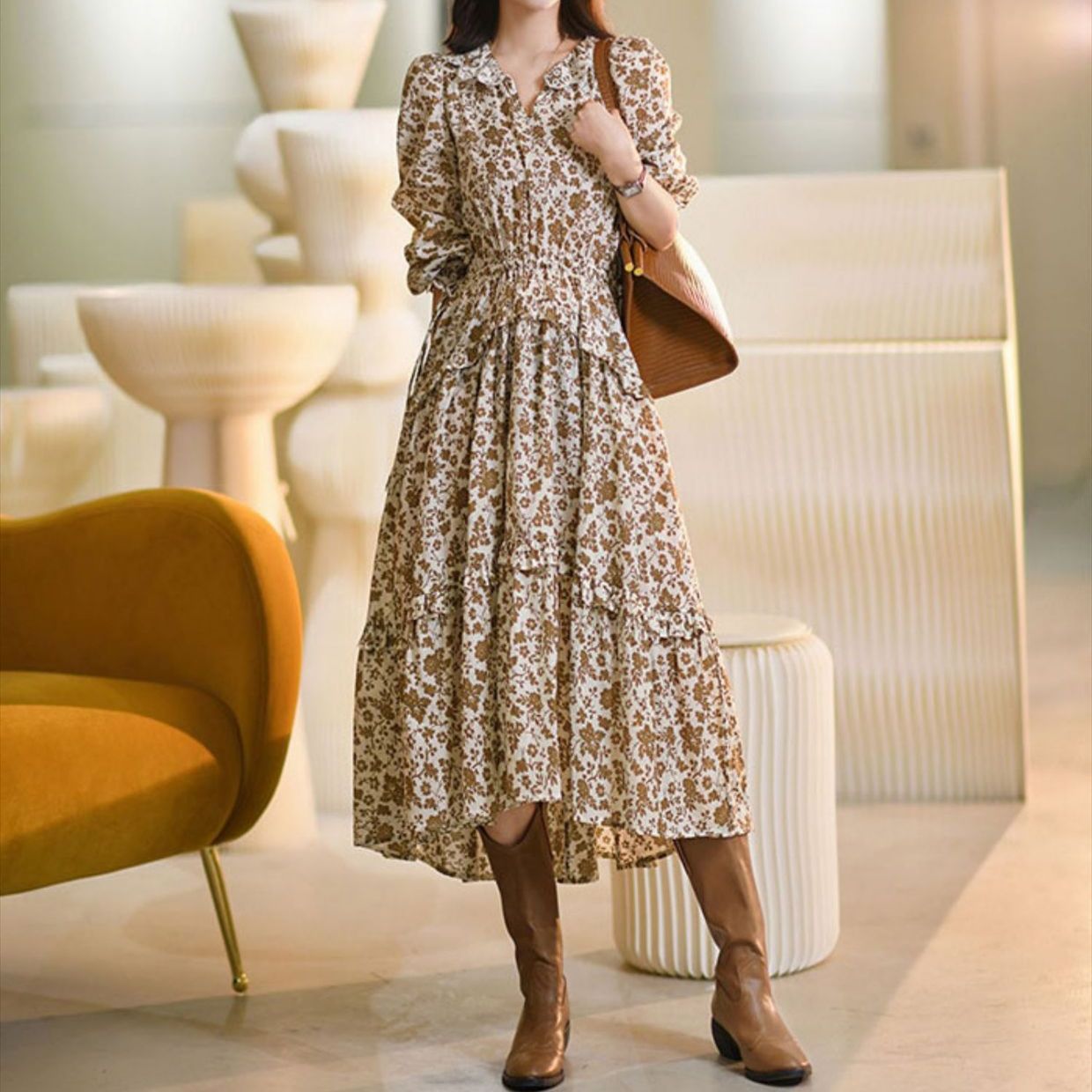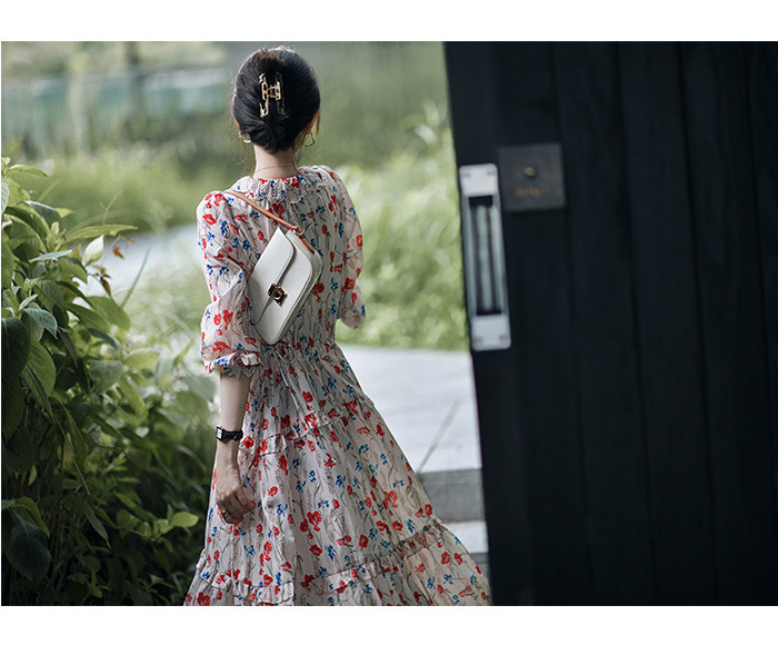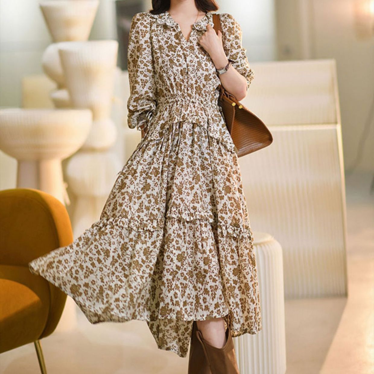 Product information: Skirt type: super large swing skirt Color: red dress, brown dress Size: S,M,L,XL Style: Basic Fabric name: chiffon Main Ingredients: Polyester Fiber Sleeve length: long sleep