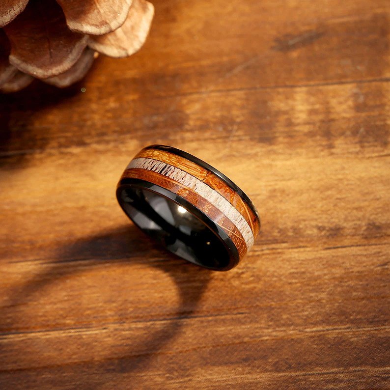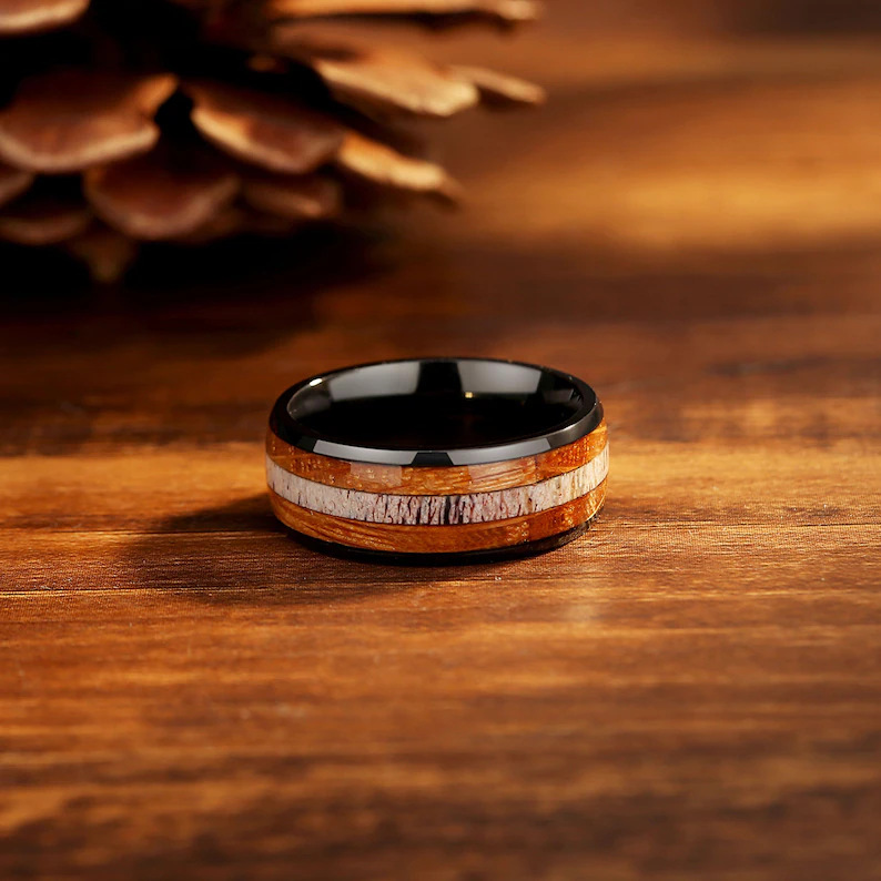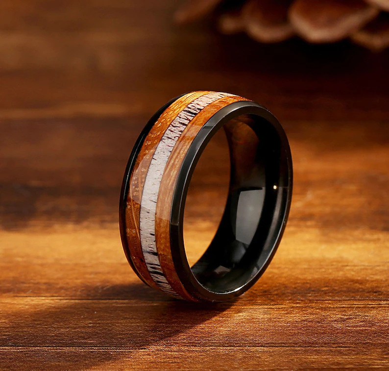 Color: Black two sides wood grain Middle White Wood stainless steel ring