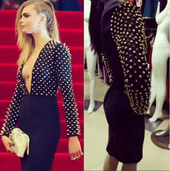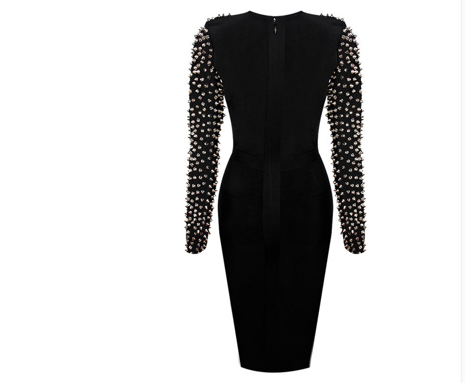 Black sexy deep V-neck fashion high-end anti-wolf point drill long-sleeved slim bandage dress