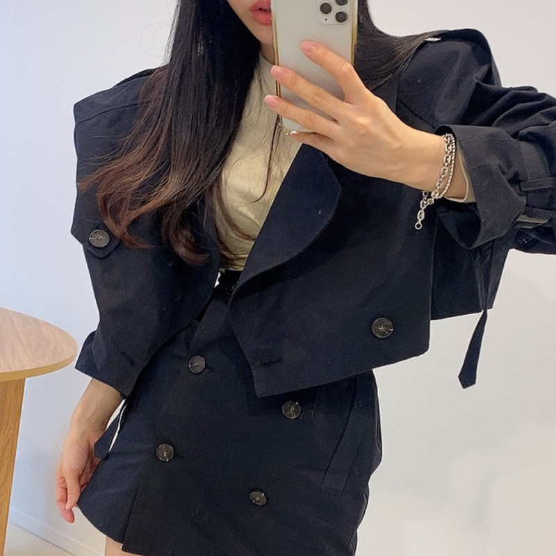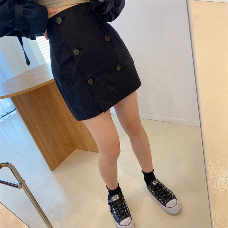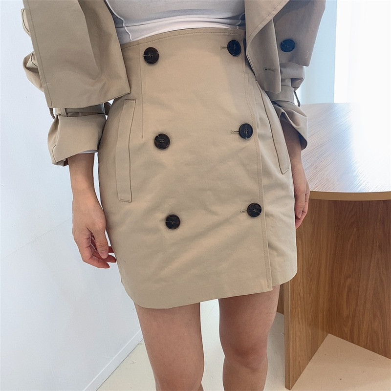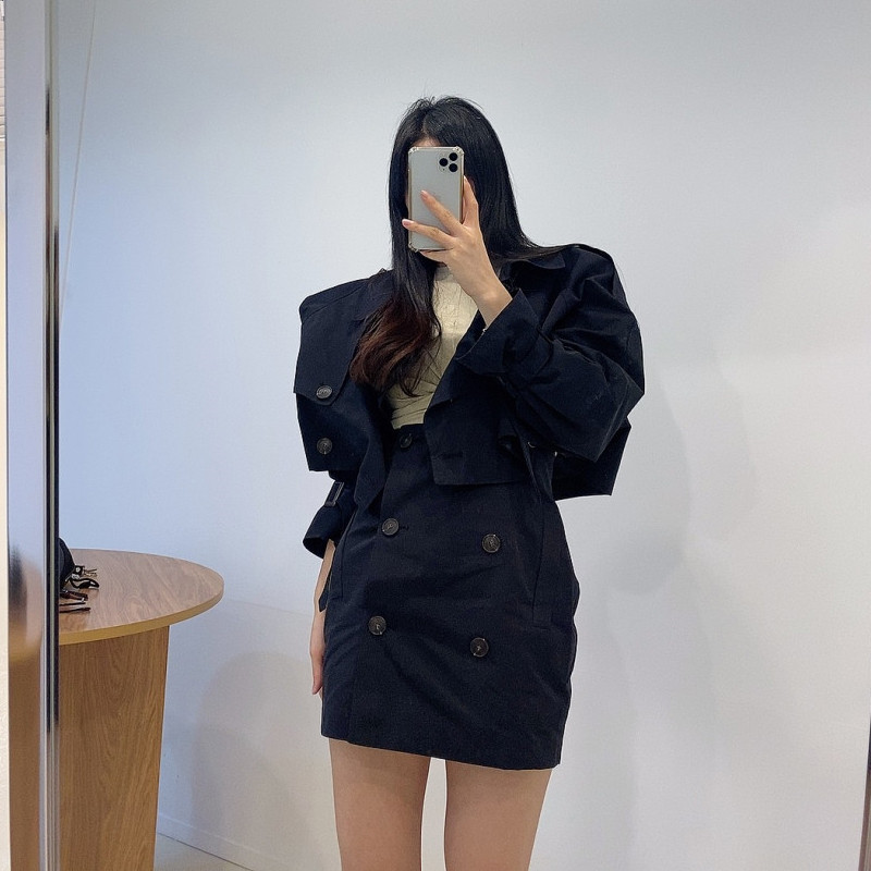 Color classification: Khaki top, khaki short skirt, black top, black skirt