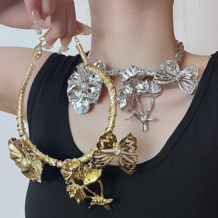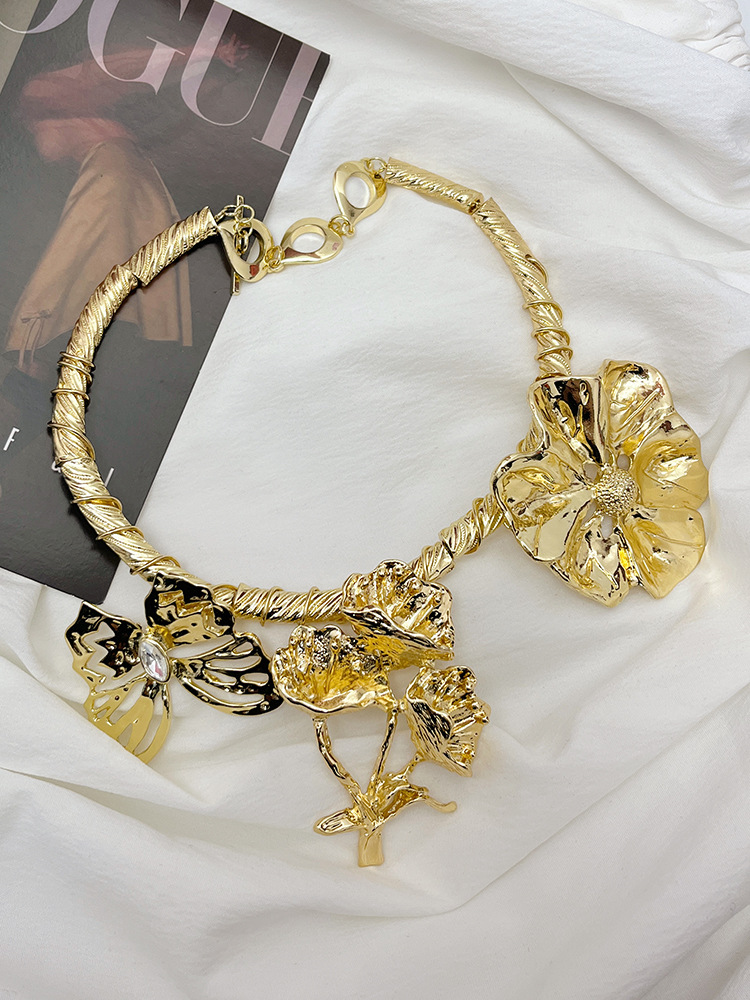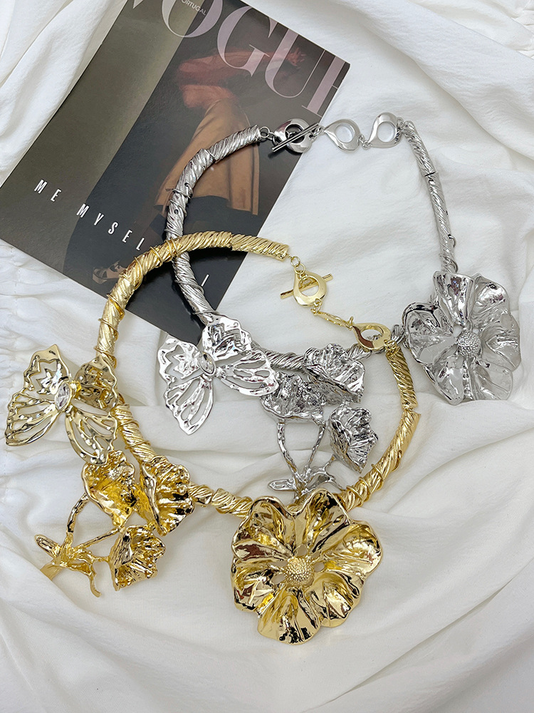 Product information:Color: gold, silver Chain style: clavicle chain Material: Metal Popular elements: flowers, ruffles, petals, three petals Size: about 40cm in length