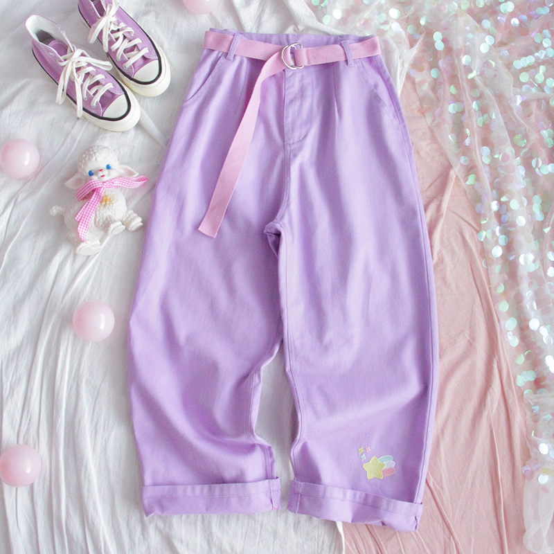 Purple wide leg pants girl trousers