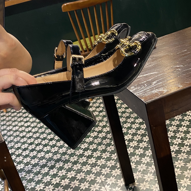 Popular elements: metal, belt decoration, chunky heel, Buckle