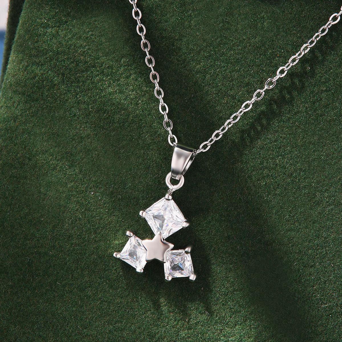 Product information:Treatment Process: Diamond Color: X5796 #-1 Golden zircon XINGX,X5796 #-2 silver zircon XINGX Applicable population: Female Chain style: cross chain Material: titanium steel Popular elements: square, five-pointed star