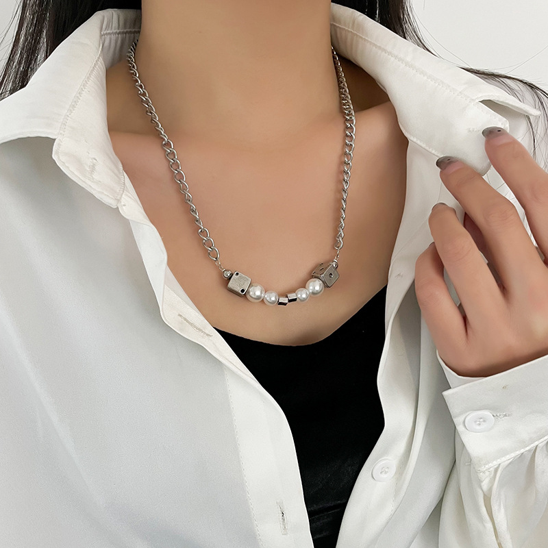 Product information:Color: Dice pearl necklacePendant material: AlloyStyle: UnisexChain style: Regular chainMaterial: titanium steelShape: GeometricPopular elements: DiceStyle: sweet and cool