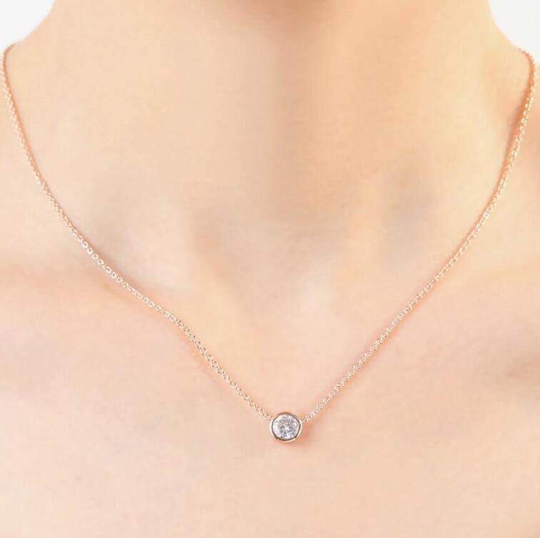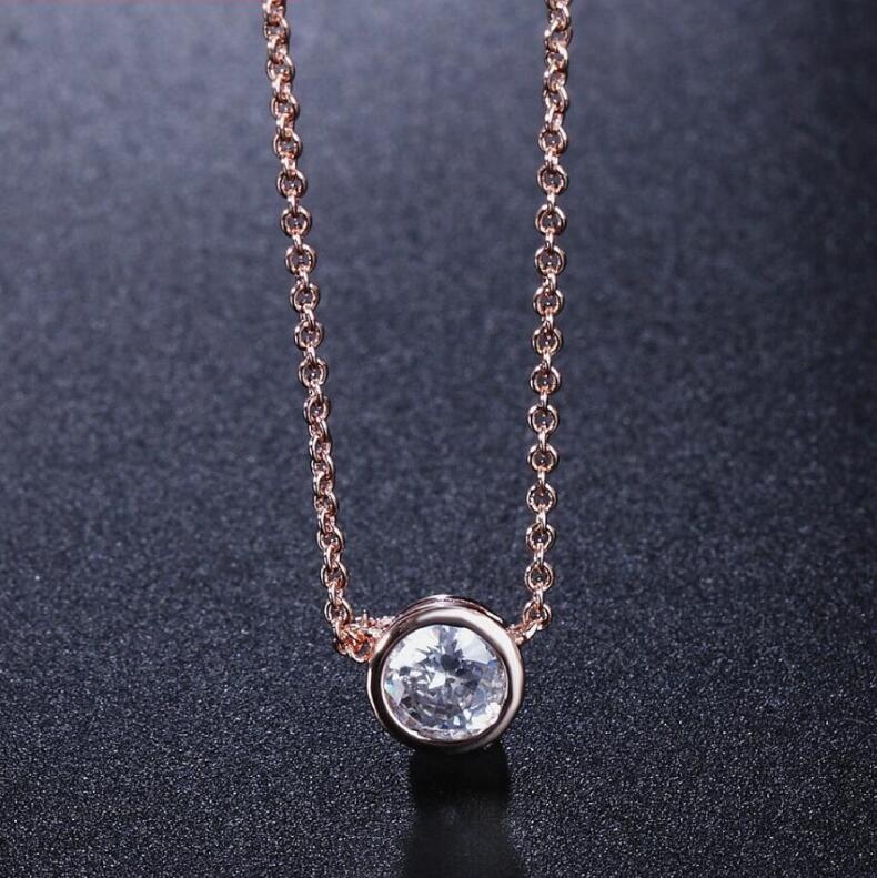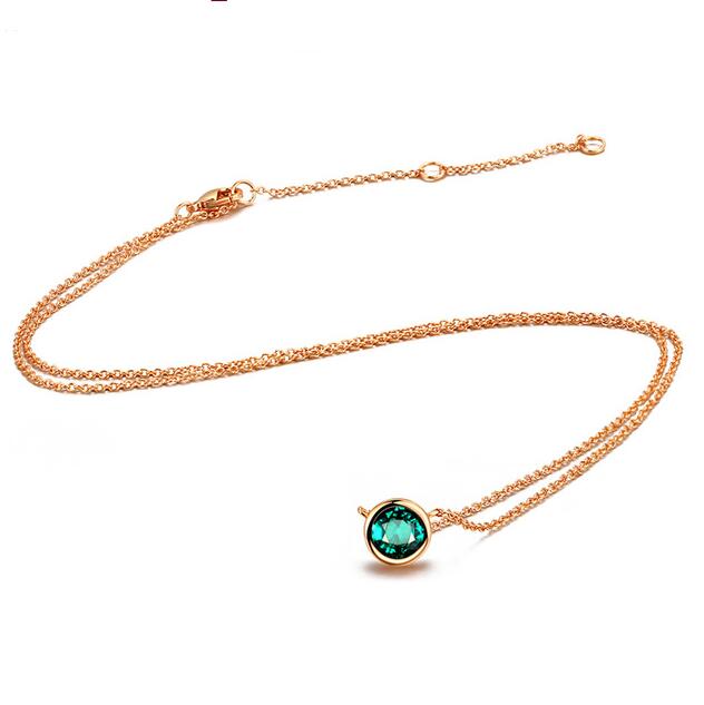 Simple style crystal pendant chain necklace gold and pink color crystal jewelry