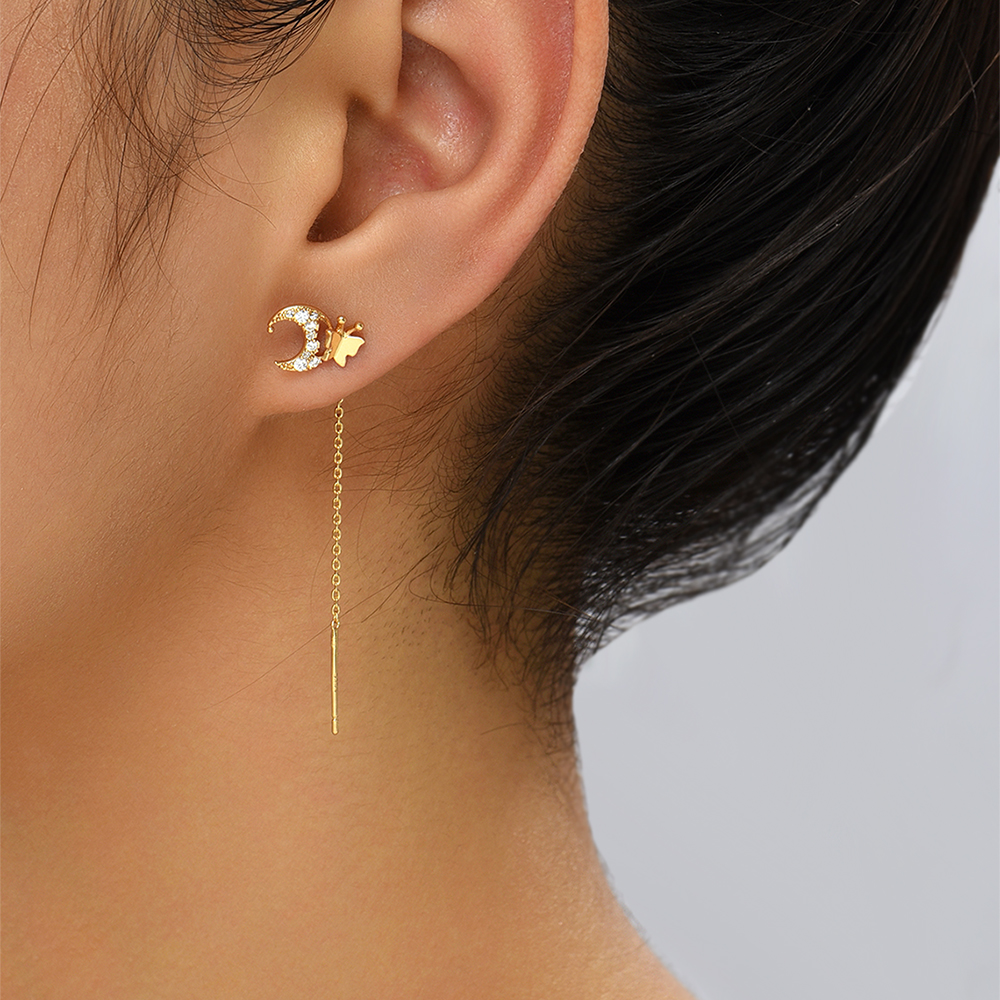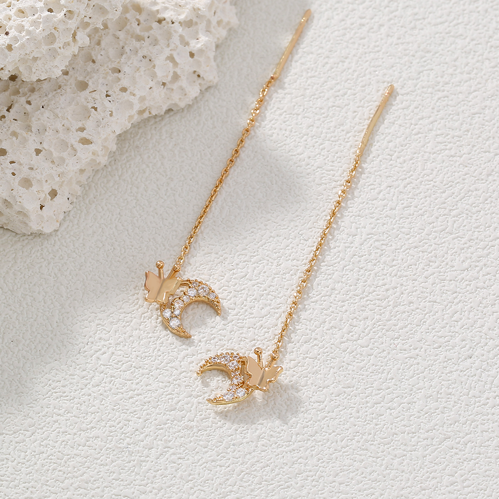 New Style Stylish Copper Micro-zircon Butterfly Moon Earrings Long Earrings Raise Earholes Earrings Earrings Earrings Female Accessories