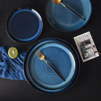 Color: 6-inch side plate [palm size] [fog green], 8-inch side plate [fog green], 10 inch side plate [fog green], 12 inch side plate [fog green], 8-inch side plate [blue glaze], 10 inch side plate [blue glaze], 12 inch side plate [blue glaze]