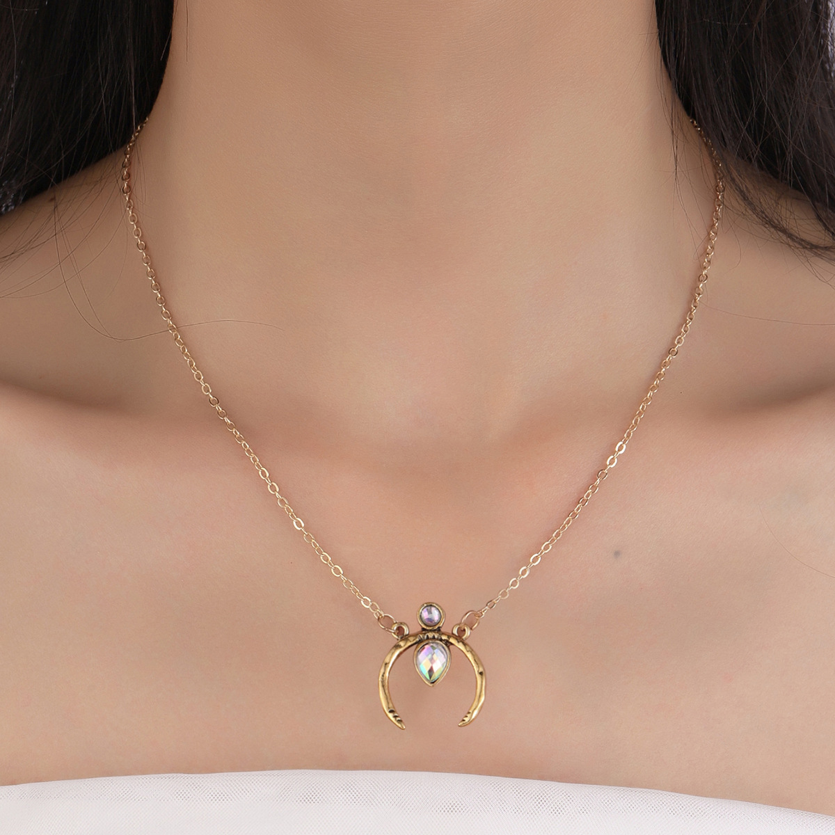 Product information:Color: Gold Chain style: water wave chain Shape: Crescent Moon Popular elements: metal, geometry Style: European and American Material: Alloy Size: 487cm