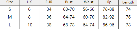 | size | UK | EUR | Bust | Waist | Hip | Length |
